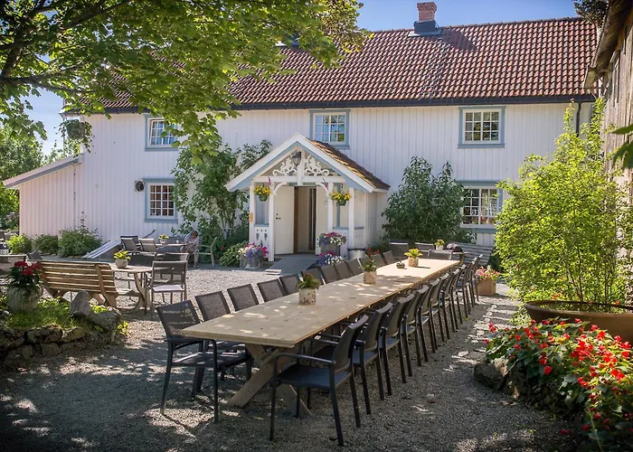 The 3-star beachfront Klostergarden Bed & Breakfast Tautra offers bicycle usage for active guests approximately a 10-minute ride from Helleristninger Frosta.